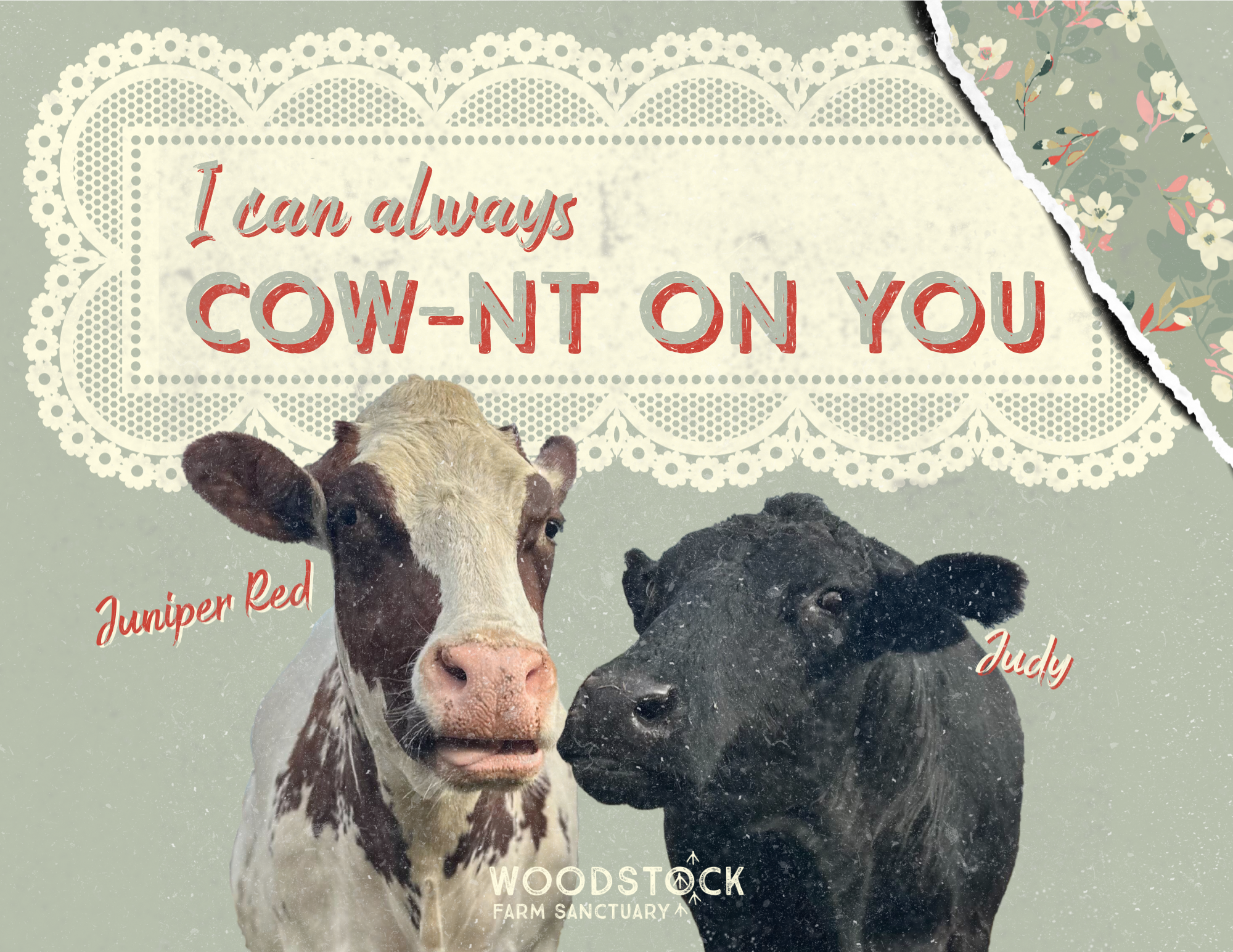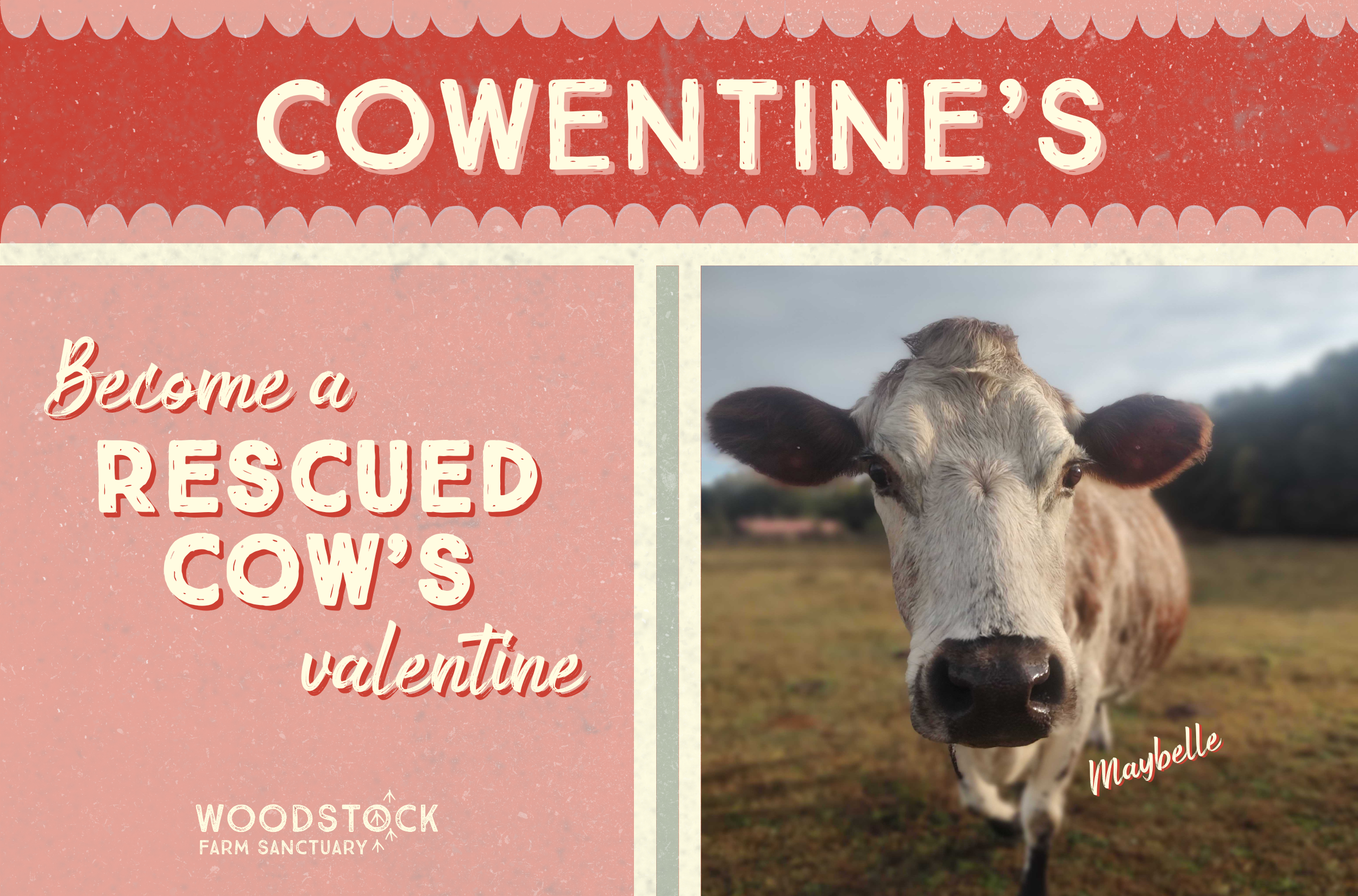 Fill out the form below to support rescued cows and send a Cowentine’s e-card to your loved one! Each Cowentine gift supports the daily care of our cow herd and the rest of our Sanctuary residents.♡ You will have the opportunity to choose your e-card and give us your recipient’s information once you choose your payment method below.