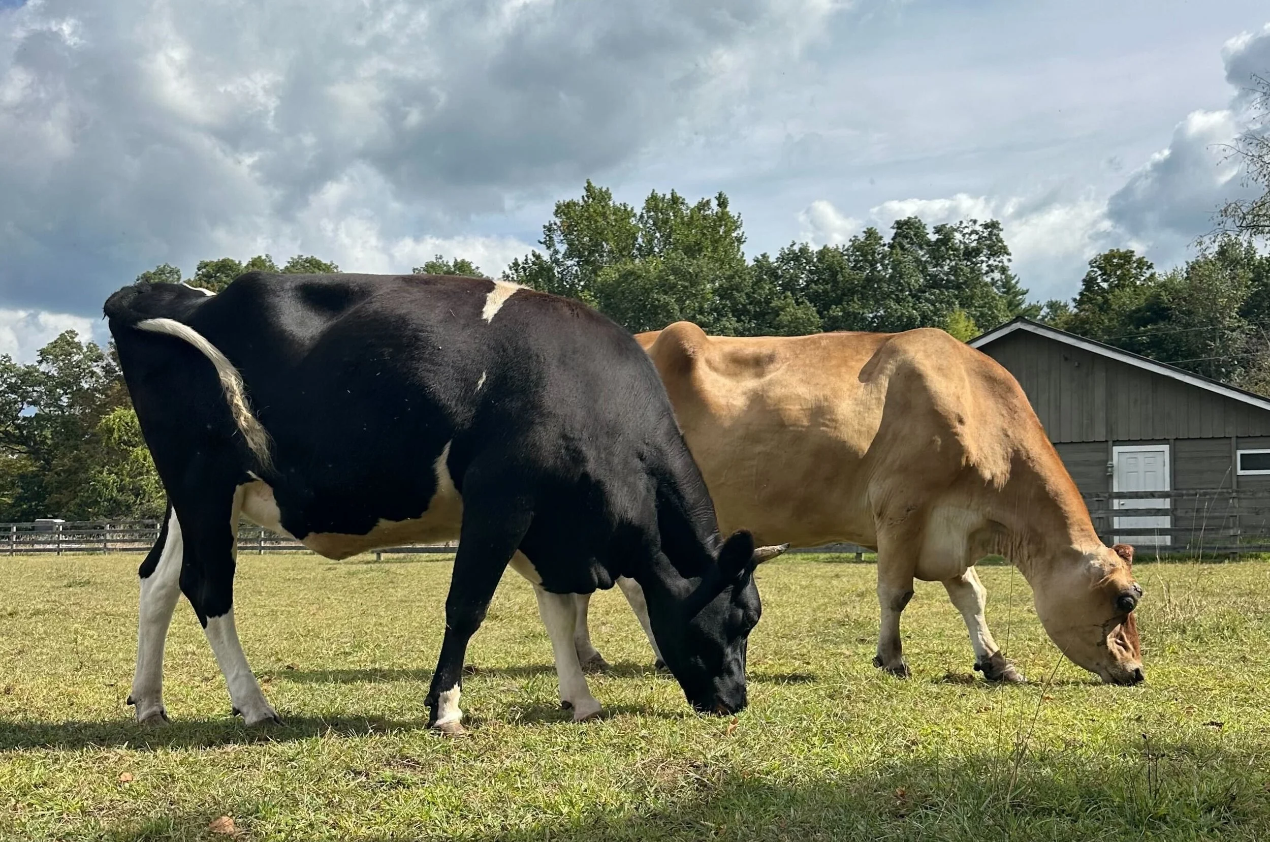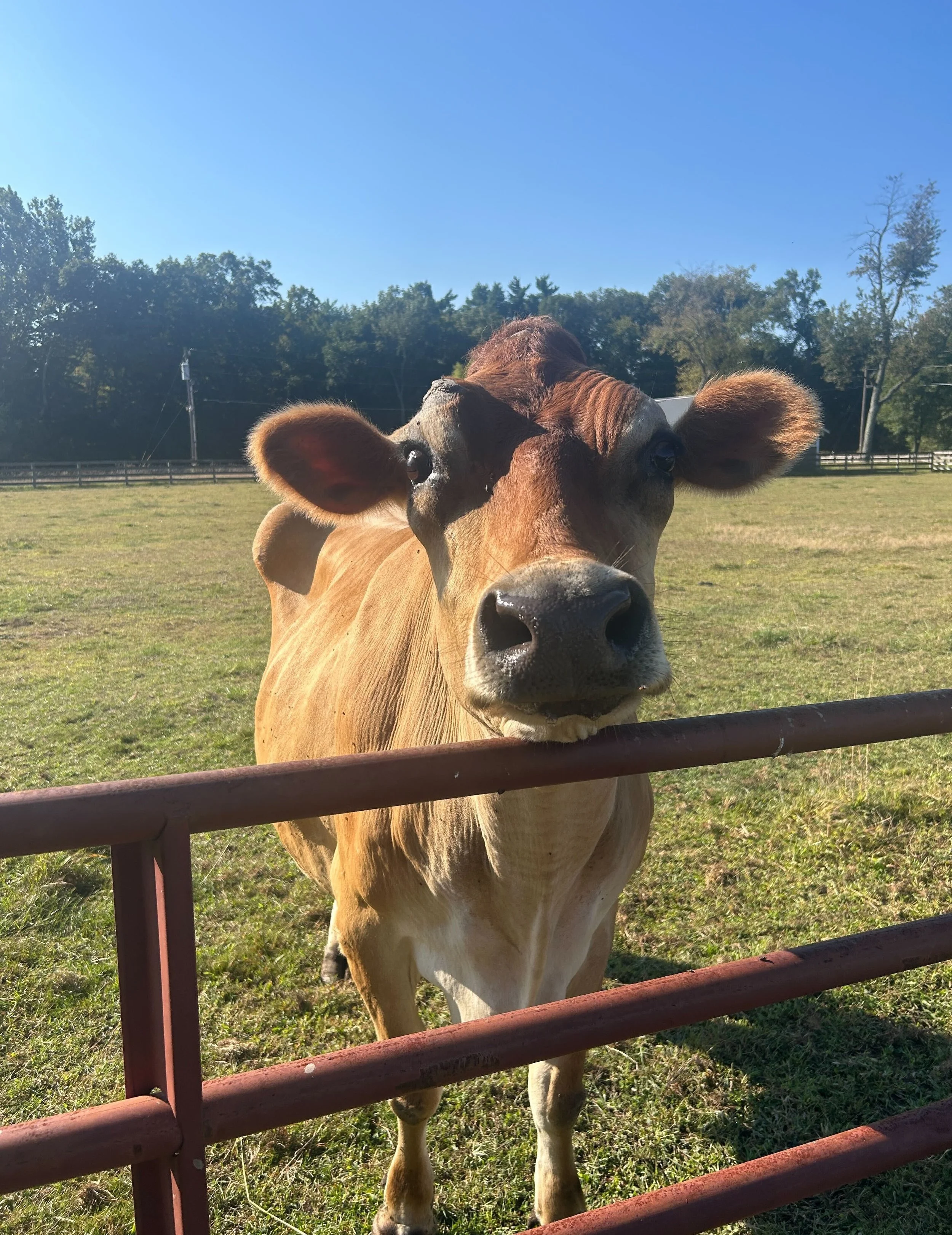 At the time of his arrival at Woodstock Farm Sanctuary in 2025, Franklin was 10 years old. He continues to face challenges with arthritis and chronic hoof issues but receives the very best care. He remains very close to Ruthie, and has begun to bond with their new herd—Mikey, Penny, and Maybelle. Despite all he has been through, he loves to socialize. He will stroll right up to the fence to greet his caregivers and volunteers. We love you, Franklin!