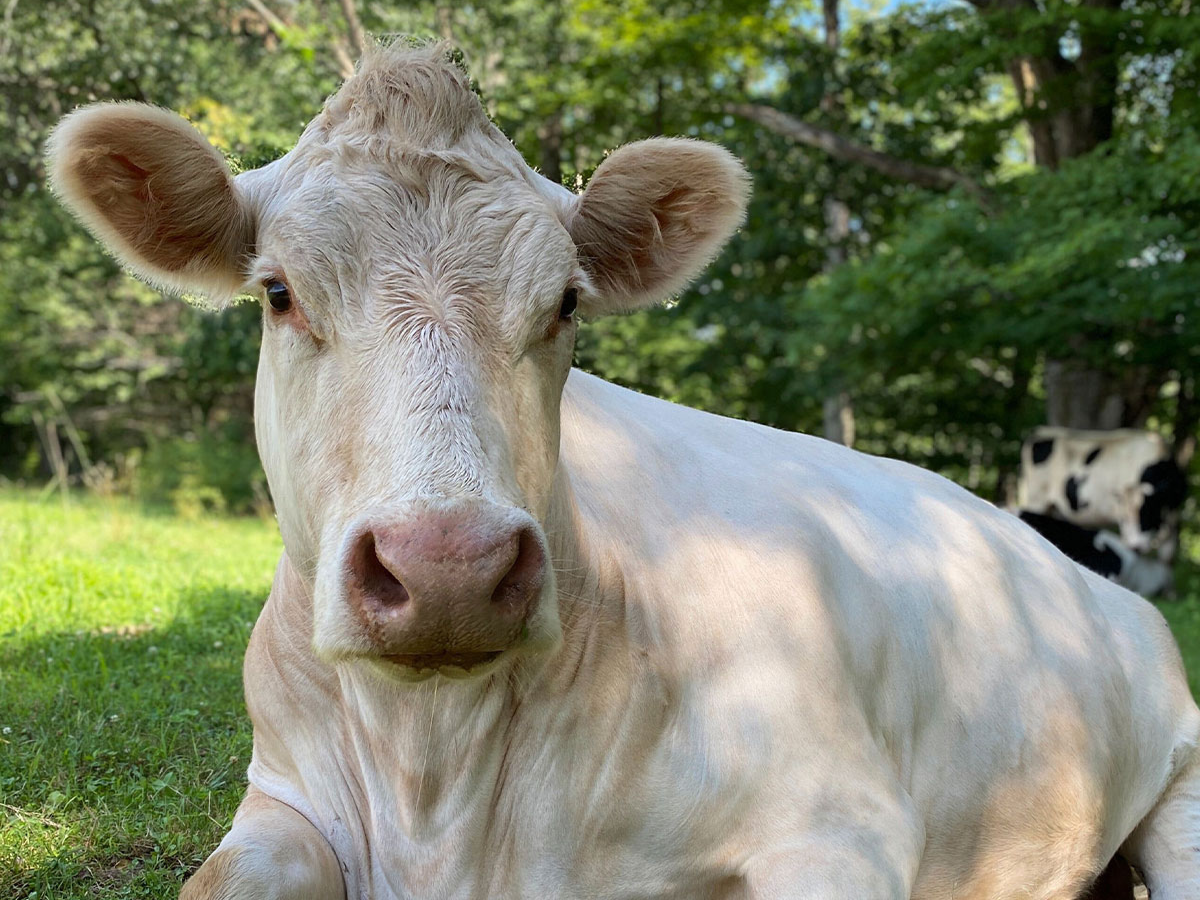 Born on a dairy farm, Fawn fell in a concrete pit, breaking both front legs, and she did not receive medical attention. A kind individual intervened and began to care for Fawn, but when her mobility worsened, her new companion reached out for help. After multiple surgeries, Fawn arrived at Woodstock Fawn Sanctuary and grew to be the carefree, happy cow she always deserved to be. Although Fawn faced many challenges, she lived an amazing life with the best care possible for six years.