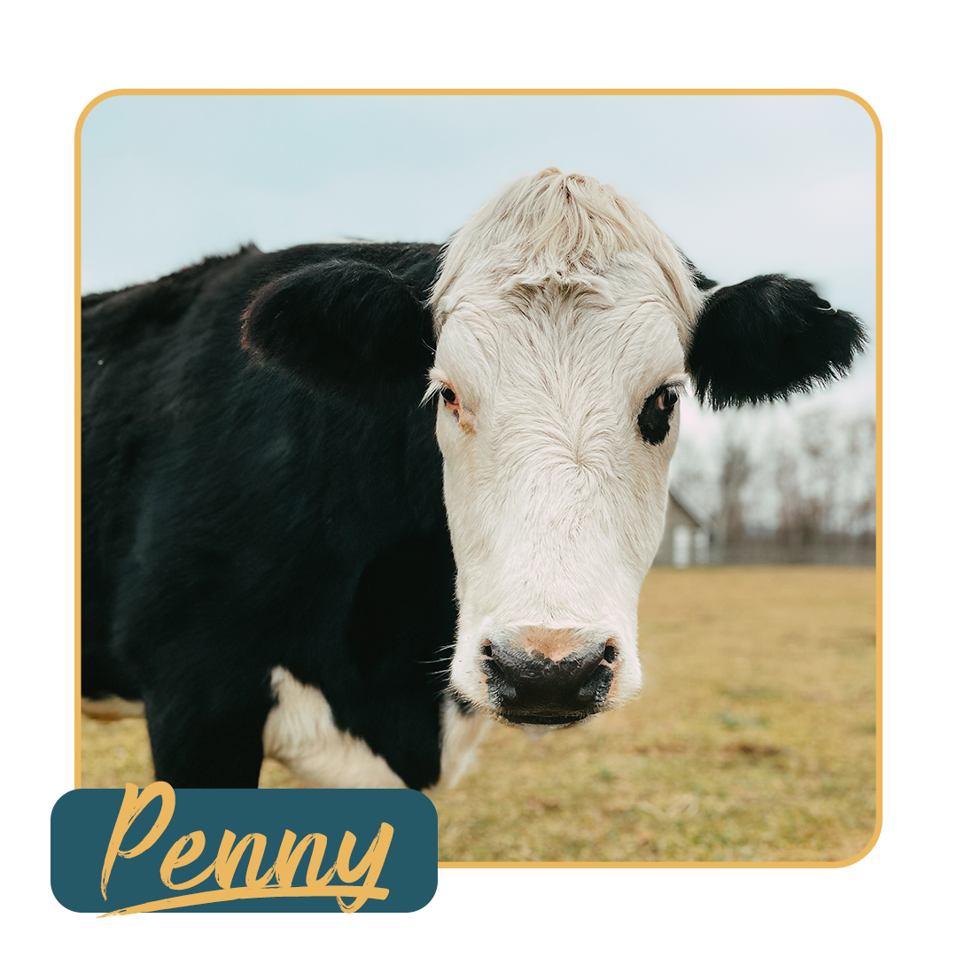 Woodstock Farm Sanctuary is currently home to 10 cow residents, each of them with their own story of survival, resilience, and individuality. Meet some of them below!
