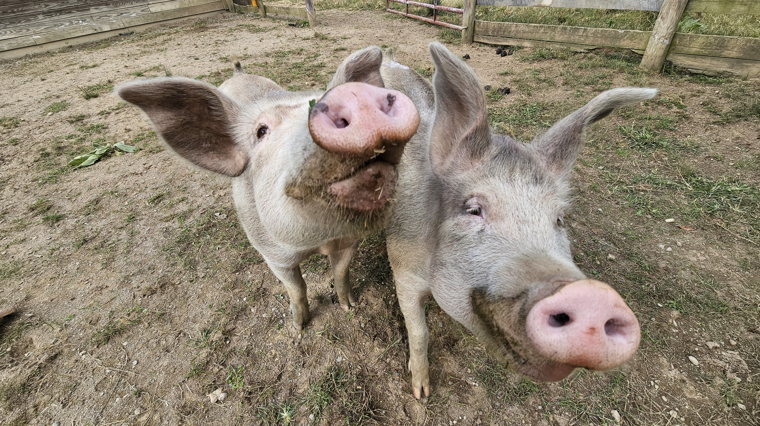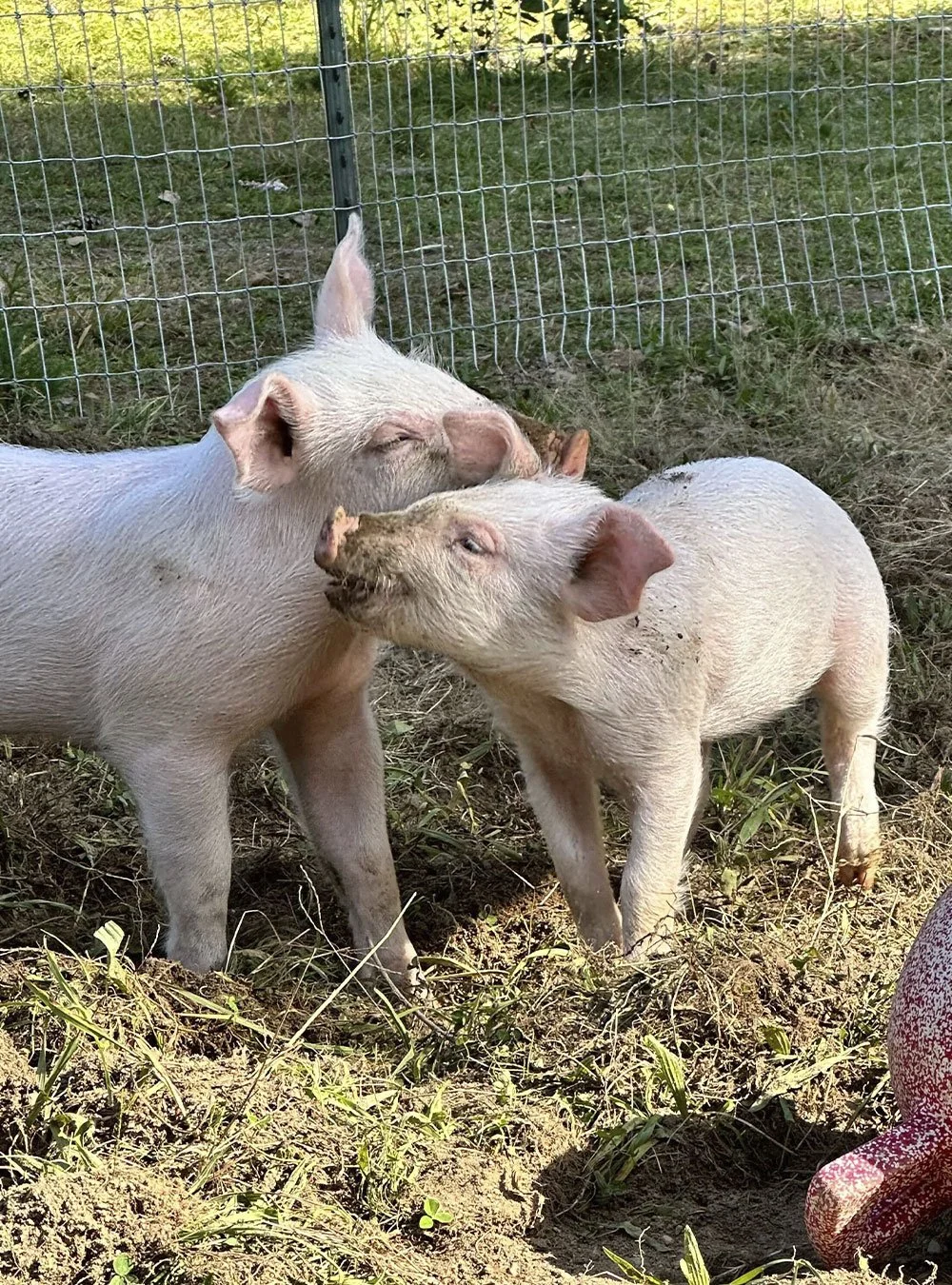 Upon their arrival, Sylvia and Marge were both joyful and curious. They bonded right away and loved zooming around in the hay together. In 2024, they grew large enough to move into a different pasture with fellow pig resident, Bunny. Both girls quickly adapted to their new space and choose to stick together. Bunny prefers the solo life, so she does not mind! Sylvia follows Marge everywhere. Marge’s favorite activity is rooting through the grass and dirt in her pasture. We are so excited to watch these inseparable friends grow and thrive in an environment where they will never be seen as a commodity but as the unique and precious individuals they are.