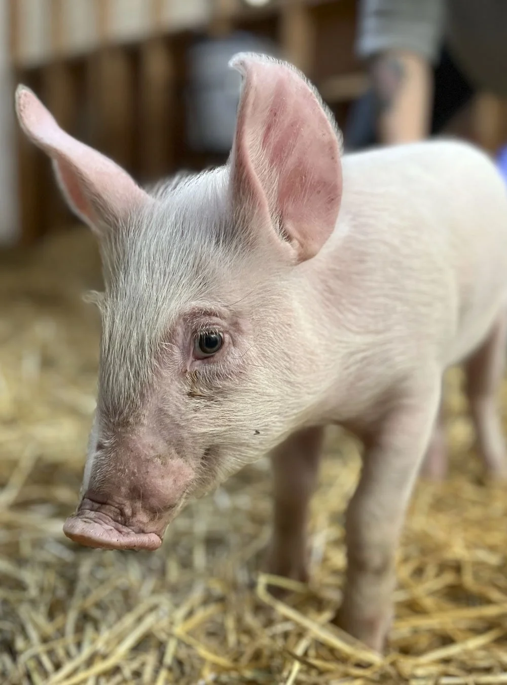 In September of 2023, we were informed of a small piglet who had been found alone on an unseasonably warm day. This special little piglet somehow survived a fall from the transport truck and a kind person reached out to us after initially rescuing her. We knew we needed to save this baby, who deserved a chance at a full, happy life. We named this sweet girl Marge.