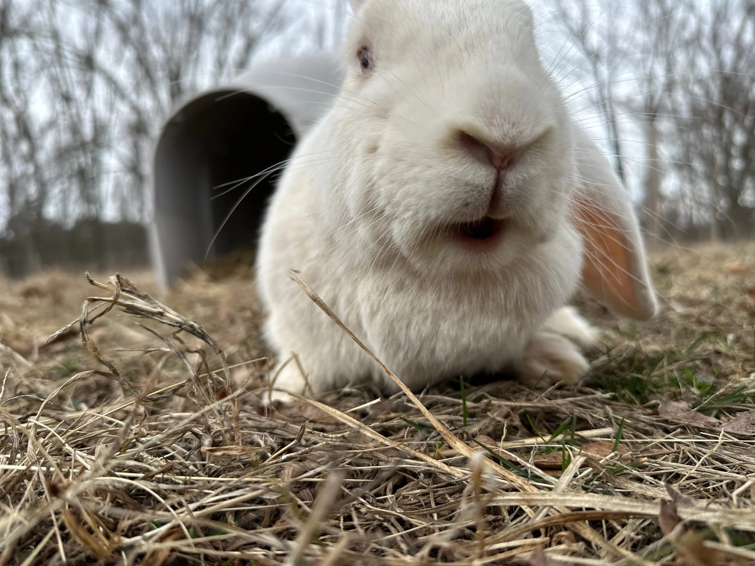 Donna, a rabbit rescued from laboratory testing, gives the camera a sniff
