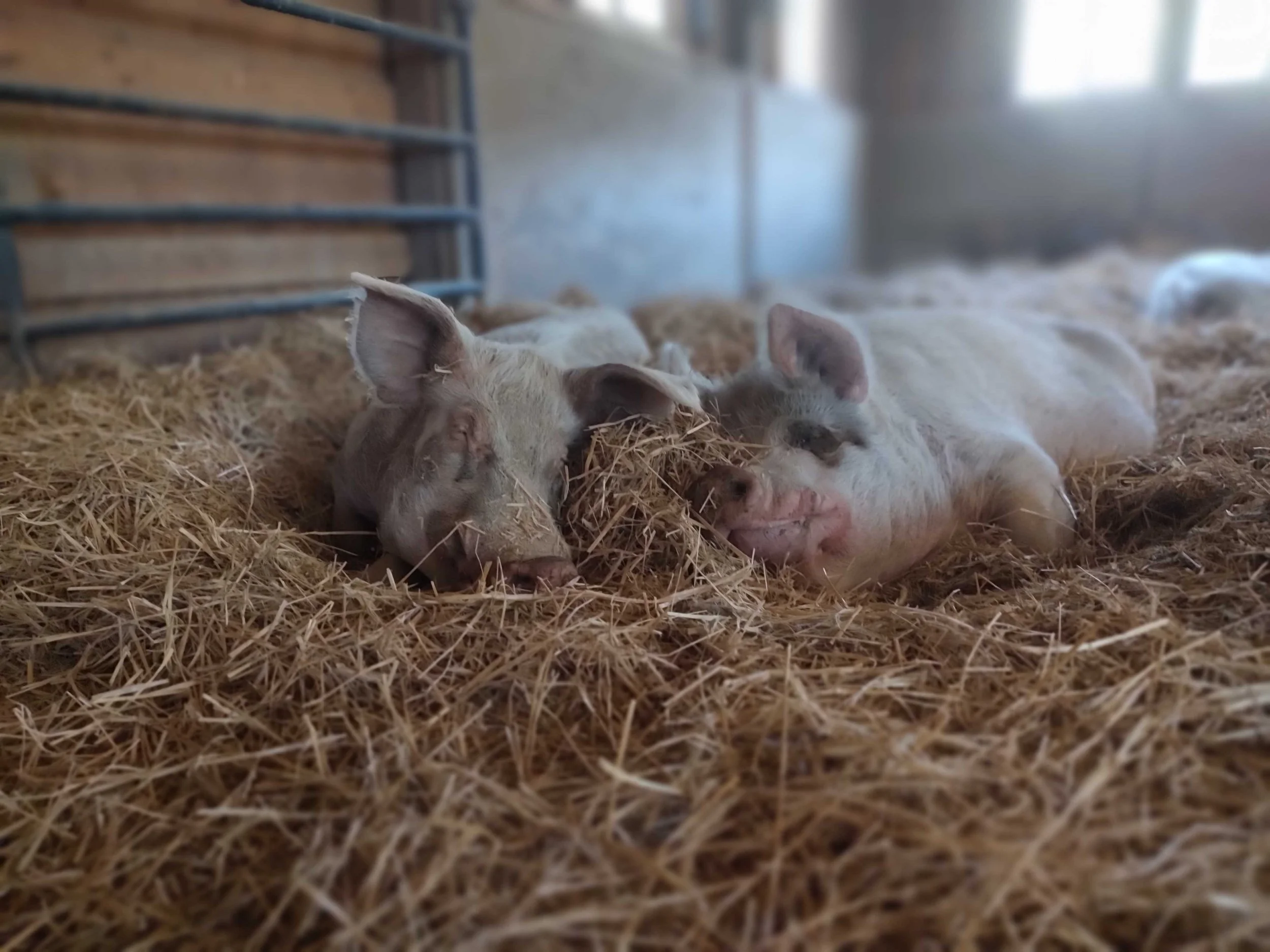 Ari and Mamma, rescued from slaughter, snuggle in the straw