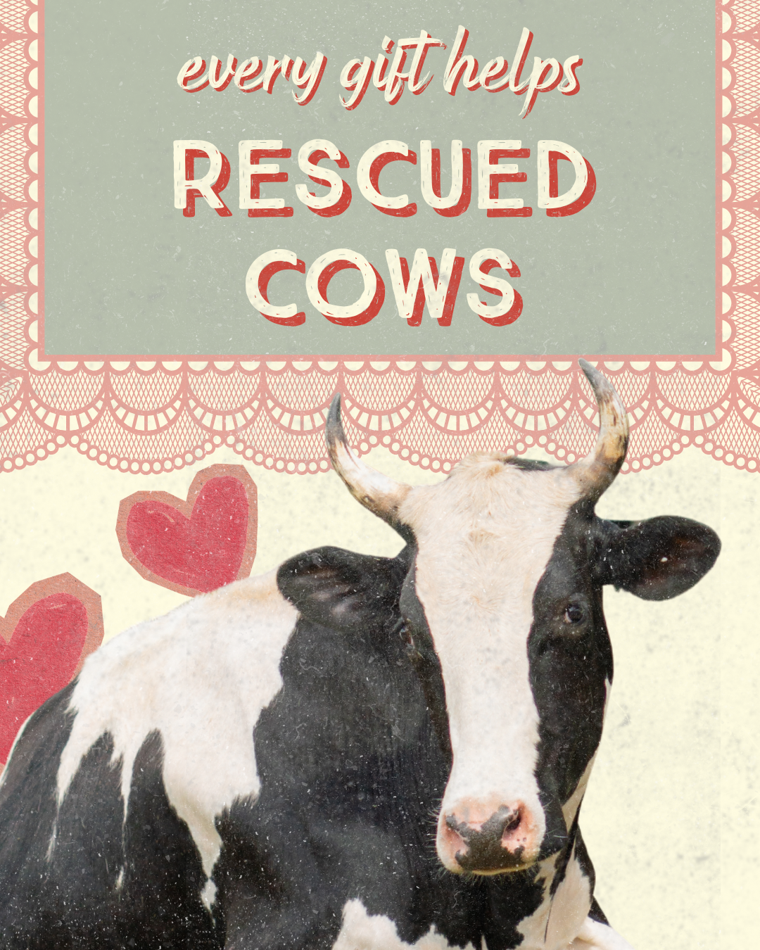 Its incredibly heartwarming to see you including rescued animals in your holiday traditions, year after year. Your kindness makes it possible for us to give sweet cows like Franklin, Penny, Juniper, and Judy a safe and loving home. Thank you. From all of us at the Sanctuary, Happy Cowentine's Day! ❤️