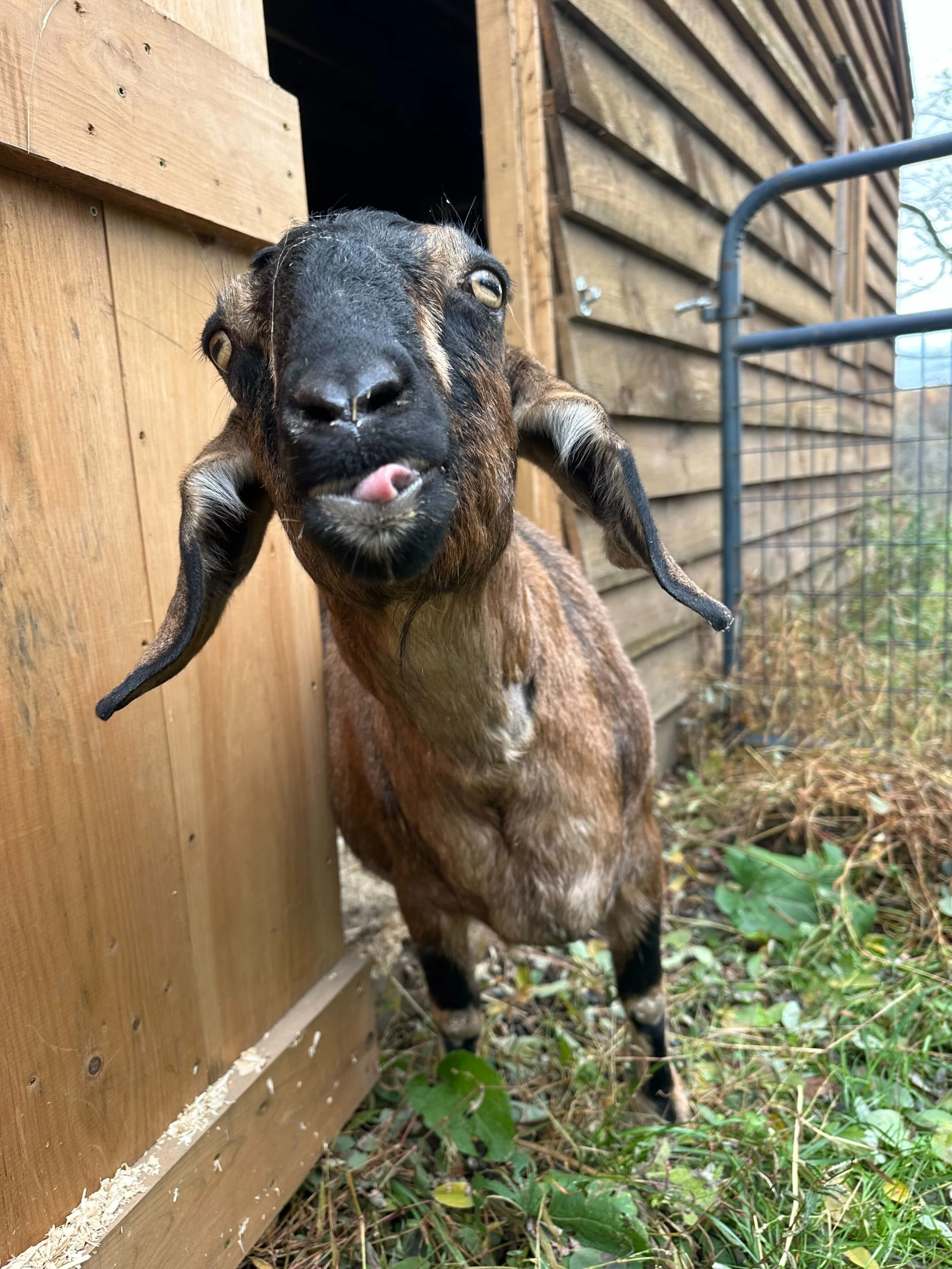 Getting this sweet older goat to a safe place, and then getting to know her silly personality, has been a huge joy. We appreciate everyone who has sent in a donation to help with her care. We’re looking forward to her healing, finishing quarantine, and then making new friends here. If you’d like to contribute to Evie’s recovery and ongoing care, you can give here — any amount is appreciated!